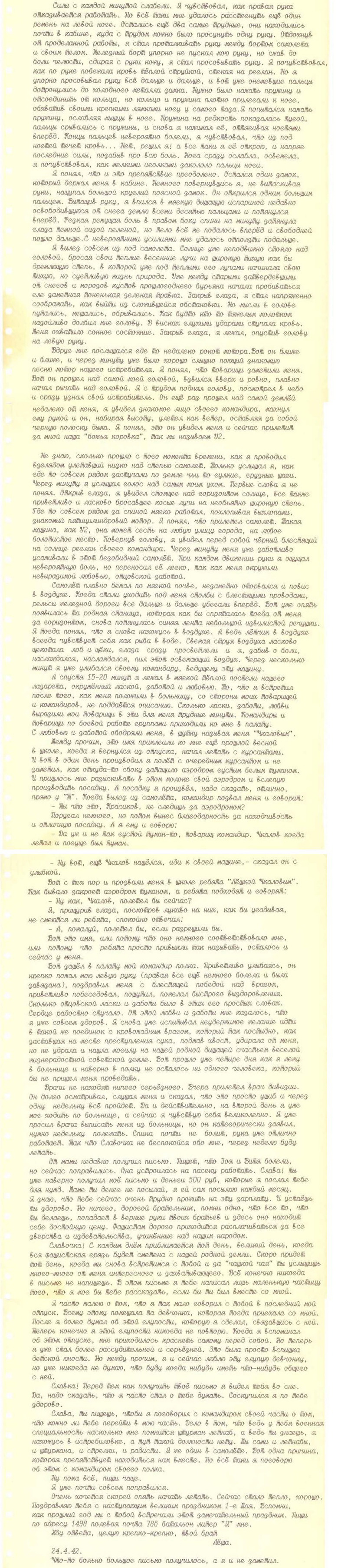 Оригинал письма от многократного перечитывания истрёпан, и текст не всегда читаем, поэтому я решил опубликовать (ниже) лишь первую страницу этого письма. А прочитать его полностью можно, открыв второй и третий файлы, где Дмитрий Викторович Псарев сделал расшифровку текста: