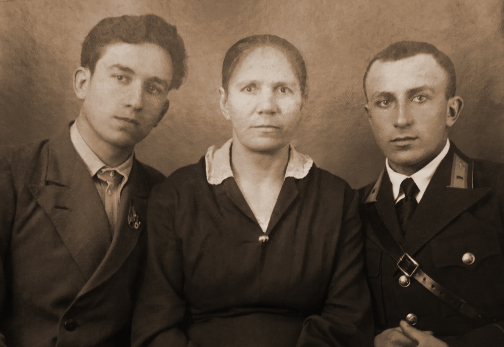 Братья Клепиковы Михаил и Николай со своей мамой, Татьяной Филипповной. Клепиков Н.Ф. после окончания летного училища 20 марта 1940 года