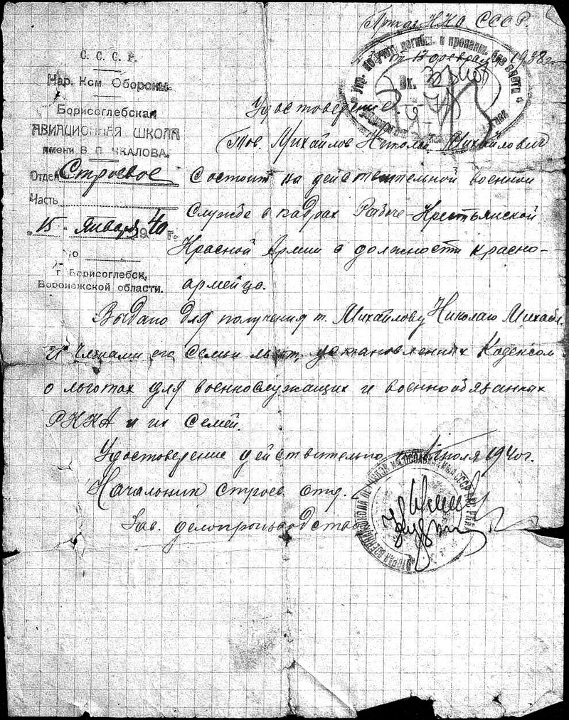 15 января 1940 года служил в Борисоглебской ВАШЛ в должности красноармейца.