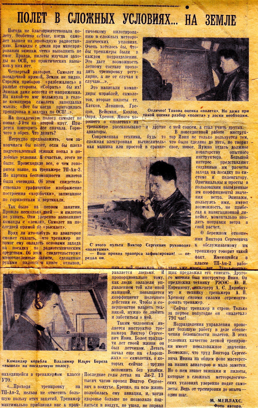 В газете "Советские крылья" № 57 от 4 августа 1962 года опубликована статья об Ивине В.С.: