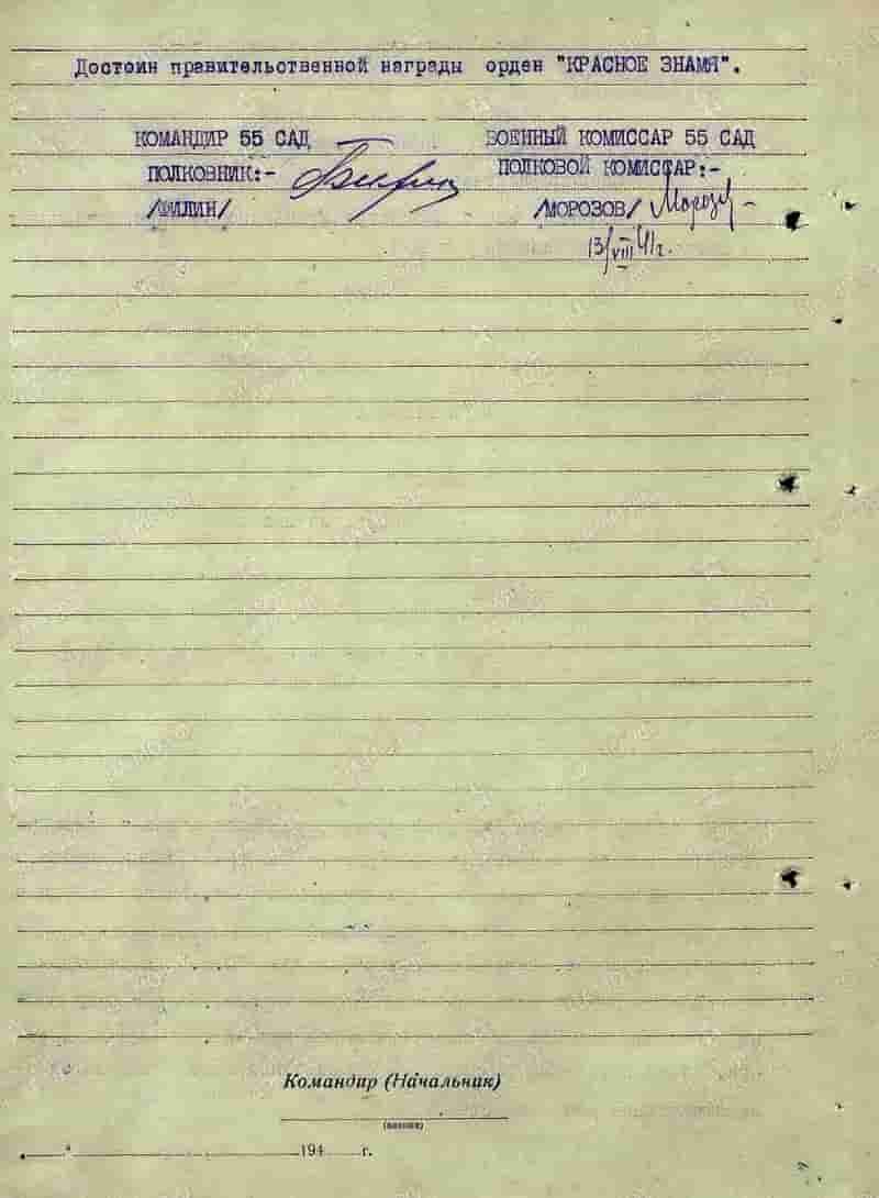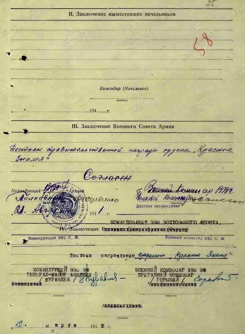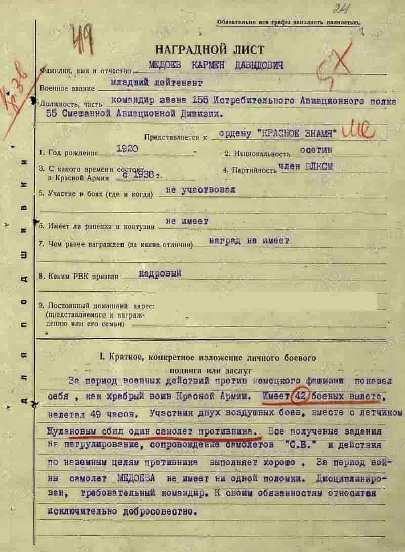 13.08.1941 командир звена 155-го иап младший лейтенант Медоев К.Д. представлен к награде.