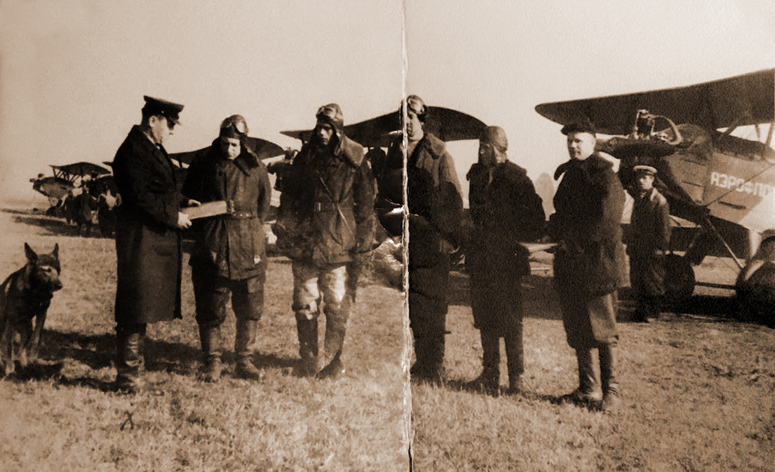 Агурейкин Сергей Иванович даёт задание перед вылетом. Рядом пёс Индус.