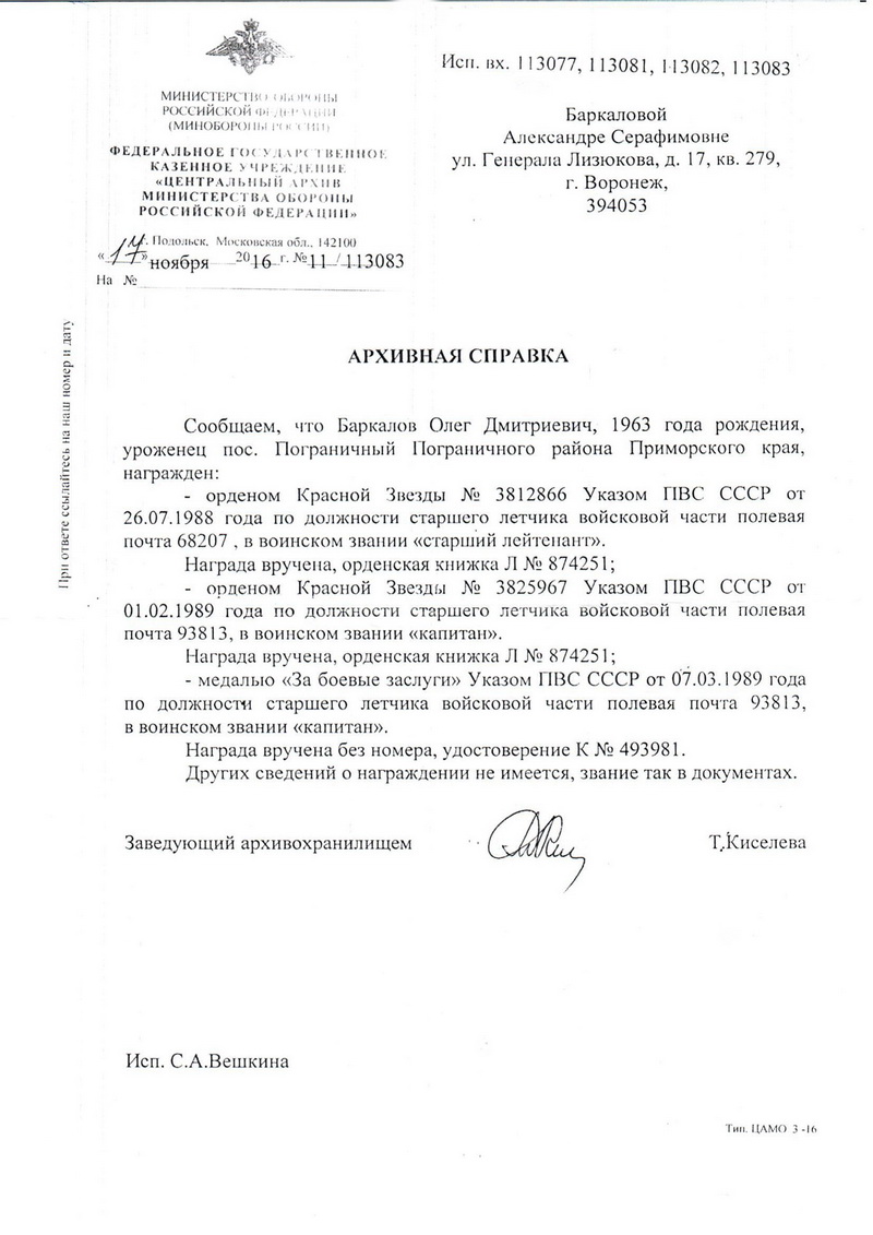 Страничка дополнена фотографиями и сведениями, предоставленными родными Баркалова О.Д.