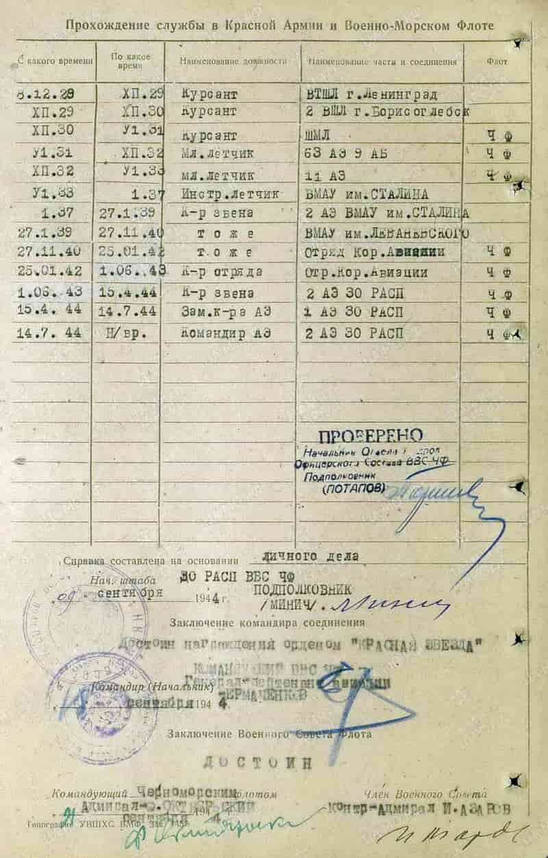 27.11.1940 назначен командиром звена отряда корабельной авиации Черноморского флота.