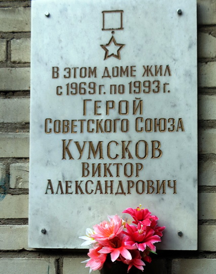 Указом Президиума Верховного Совета СССР от 15 мая 1946 года за образцовое выполнение боевых заданий командования по уничтожению живой силы и техники противника и проявленные при этом мужество и героизм гвардии старшему лейтенанту Кумскову Виктору Александровичу присвоено звание Героя Советского Союза с вручением ордена Ленина и медали "Золотая Звезда" (№ 9048).