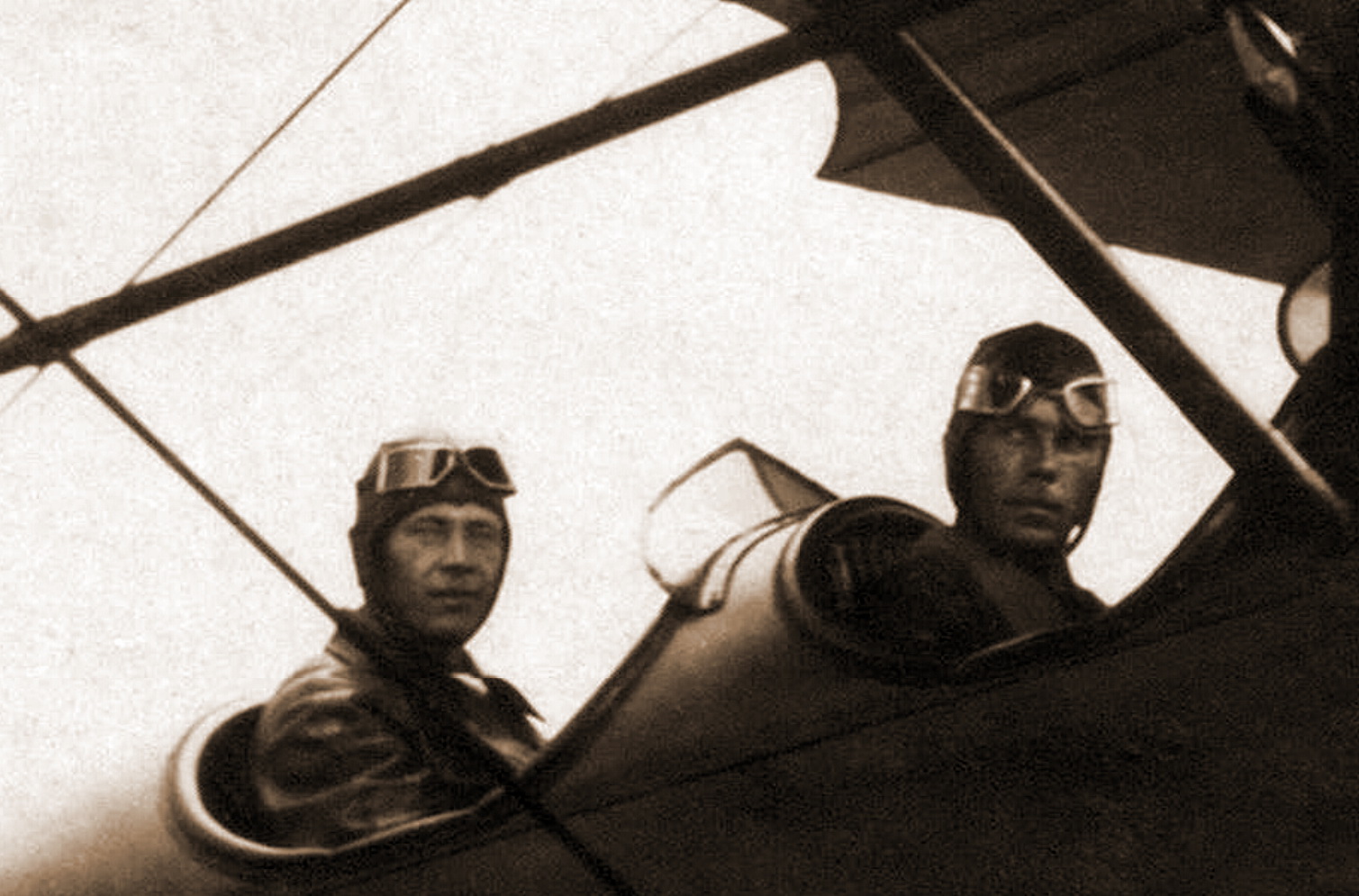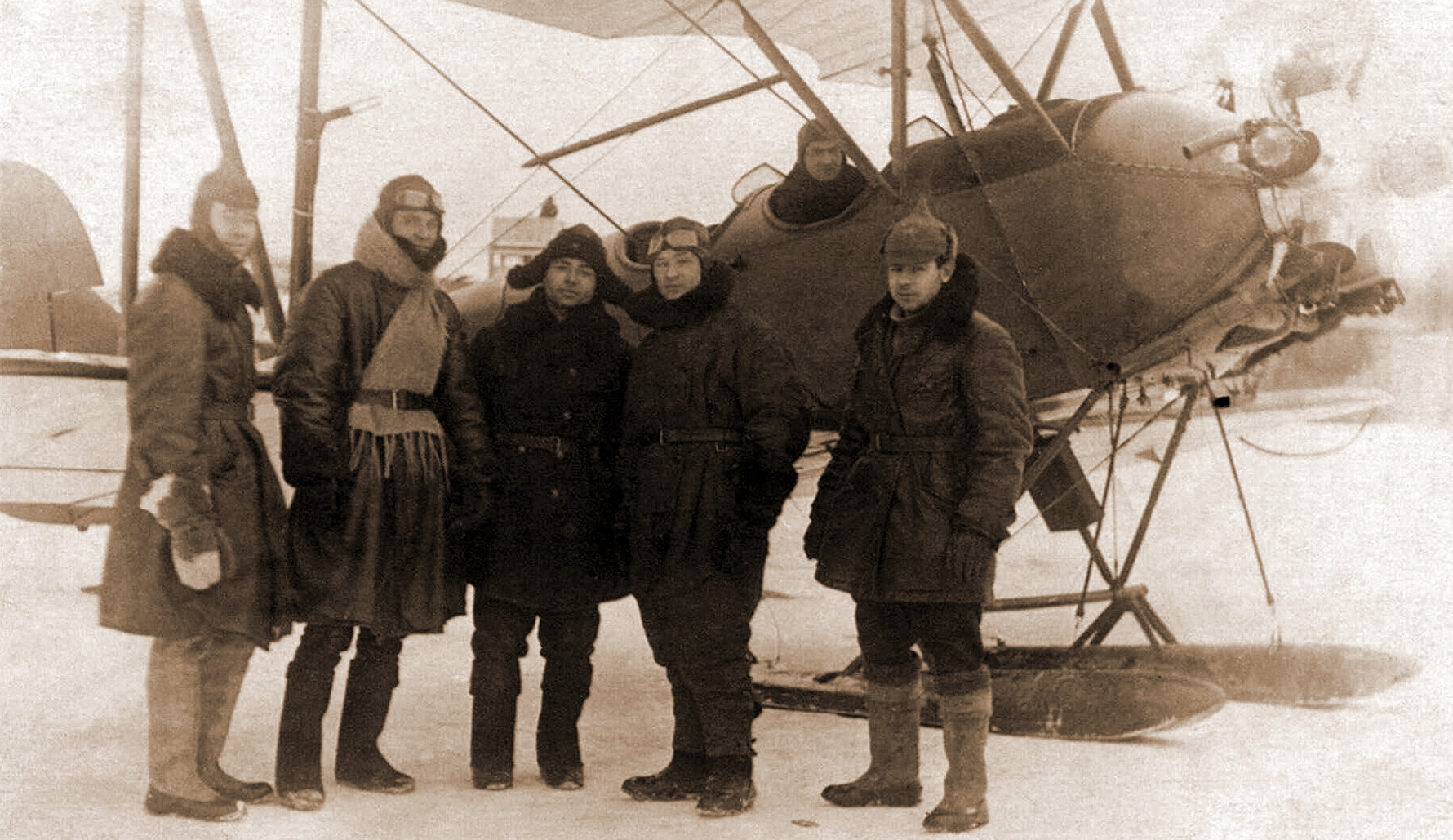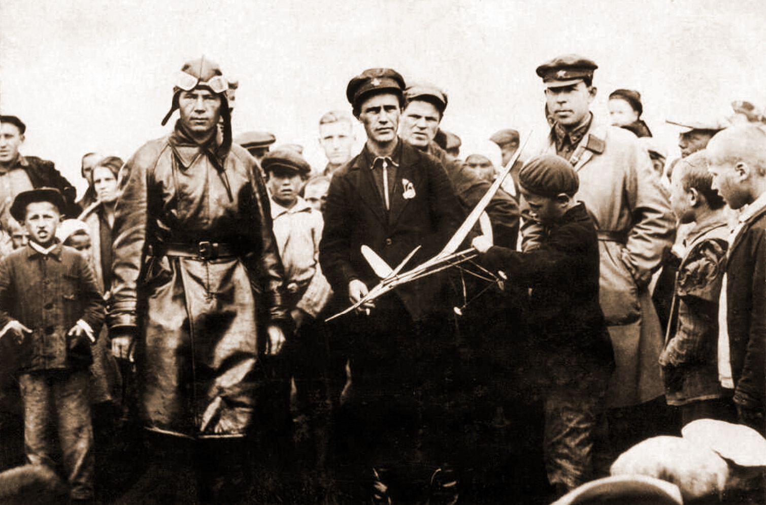 Лукинский В.С. (в кожаном плаще) в Архангельском аэроклубе
