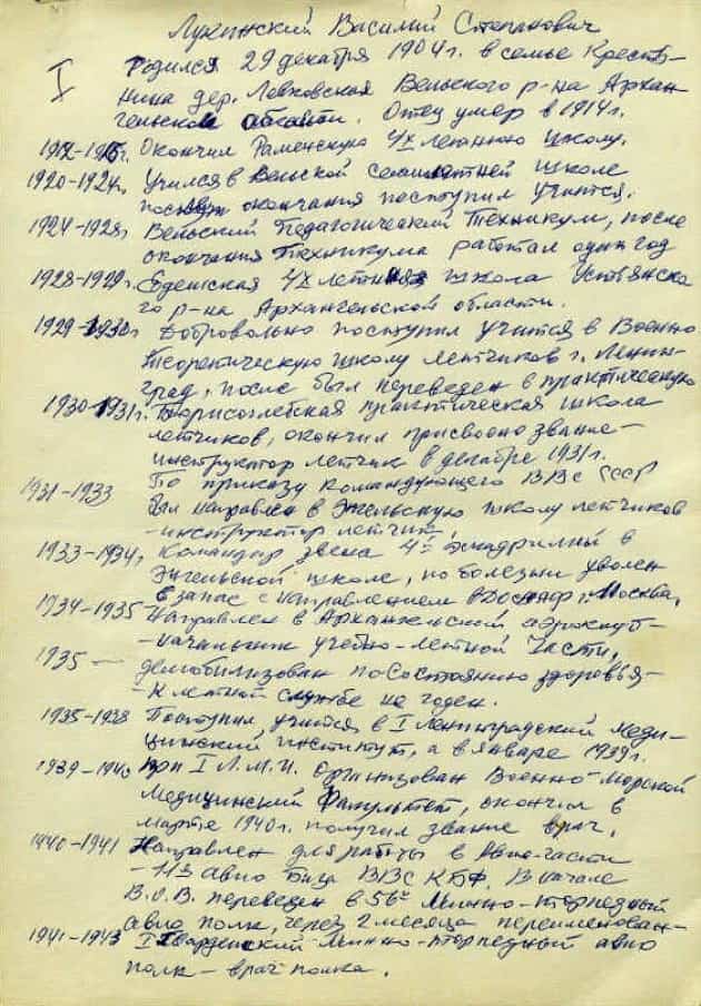 Воспоминания Лукинского Василия Семёновича "Врач полка в борьбе за жизнь". Рукопись:
