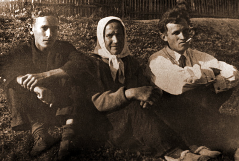 Георгий Черствов (слева) с мамой Олимпиадой Яковлевной и братом Иваном. Сельцо.