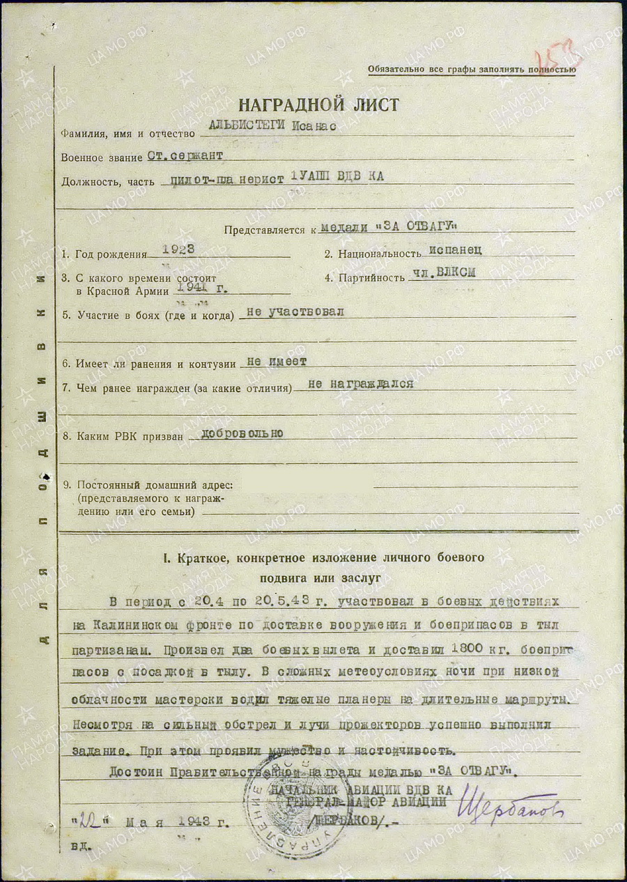 Впоследствии в боевых полётах и на партизанской земле Исоиэс Альбистеги показал себя преданным товарищем, храбрости и честности беспредельной...