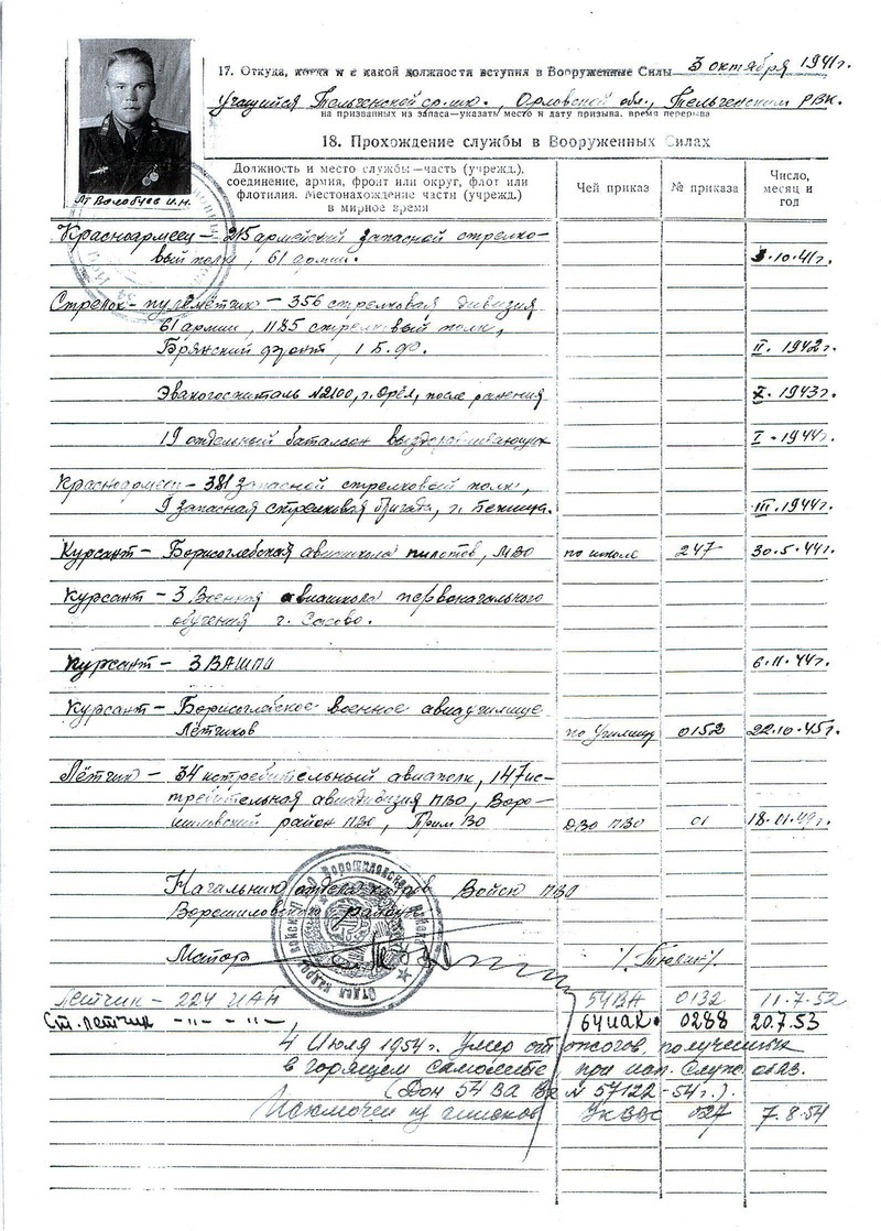 5 ноября 1951 года присвоено воинское звание старший лейтенант.