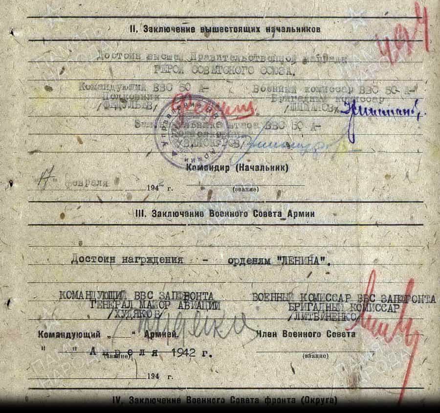 Исключён из списков Красной Армии приказом по УК ВВС Красной Армии № 09/пог. от 11.02.1942.
