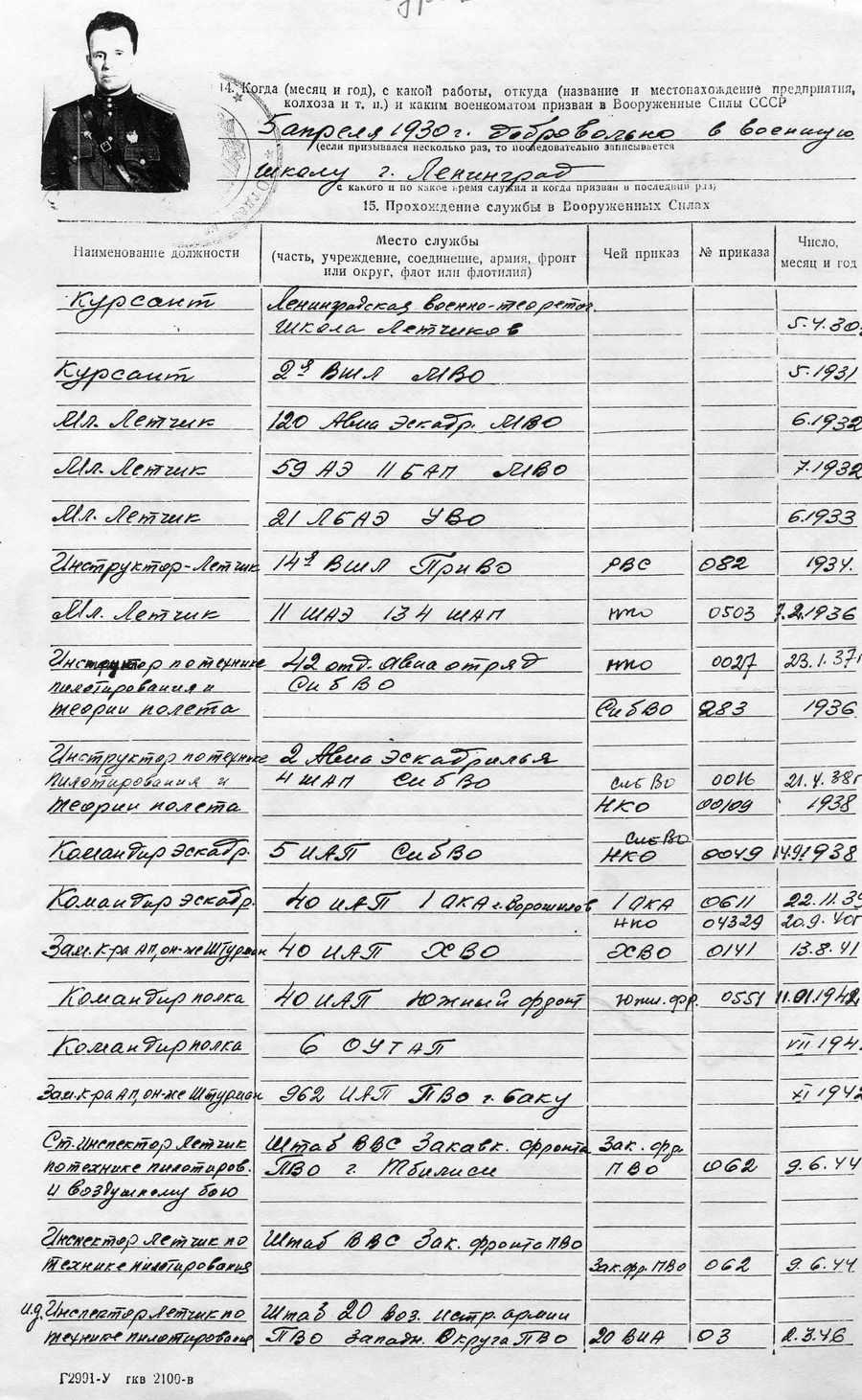 В Красной Армии с 05.04.1930 - поступил добровольно в военную школу г. Ленинграда.