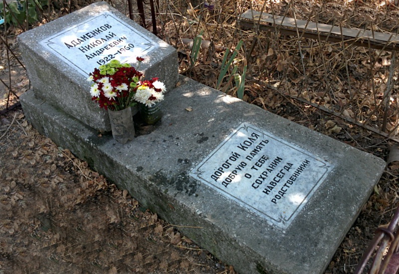 Согласно информации, полученной из Центрального архива ФСБ РФ Адаменков Николай Андреевич, 1922 года рождения ур. г. Ташкент 22.10.1948 был арестован МГБ Узбекской ССР. Осуждён 15.01.1949 военным трибуналом Туркестанского военного округа по ст. 58 п. 1 "б" (измена Родине) Ук РСФСР к 25 годам лишения свободы. Постановлением Пленума Верховного Суда СССР от 25.06.1954 освобождён из Южкузбасслага (Кемеровская область) 08.08.1954.