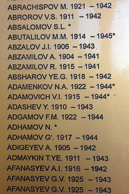 А поскольку похоронка на него приходила, имя его вписано в книгу погибших на войне в Мемориале в Ташкенте около Вечного огня, и выбито на памятнике погибшим в школе, где учился он, его сын (мой муж), и его внучка (моя дочь).