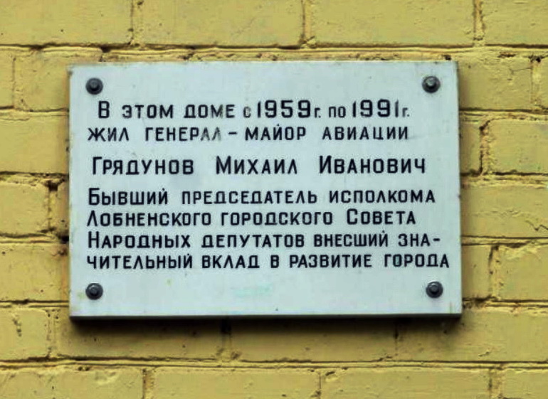 В память о заслугах Грядунова М.И. в г. Лобня на стене дома № 5 по ул. Авиационной установлена мемориальная доска.