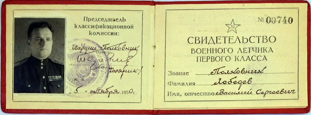 Военный лётчик I класса (05.10.1950).