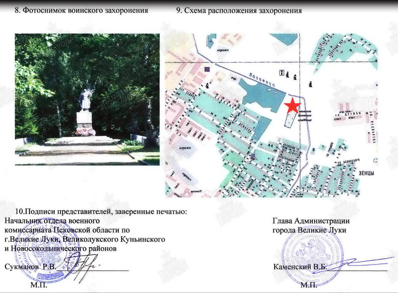 Похоронен на воинском кладбище города Великие Луки Псковской области.