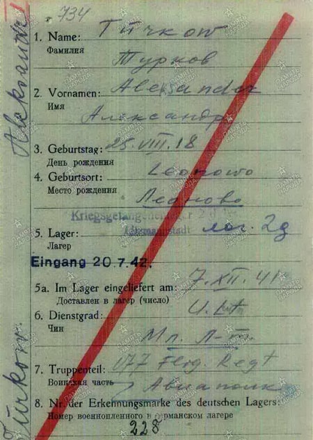 Дальше был отправлен в лагерь люфтваффе Литцманнштадт 7 декабря 1941 года. Лагерный номер 228.