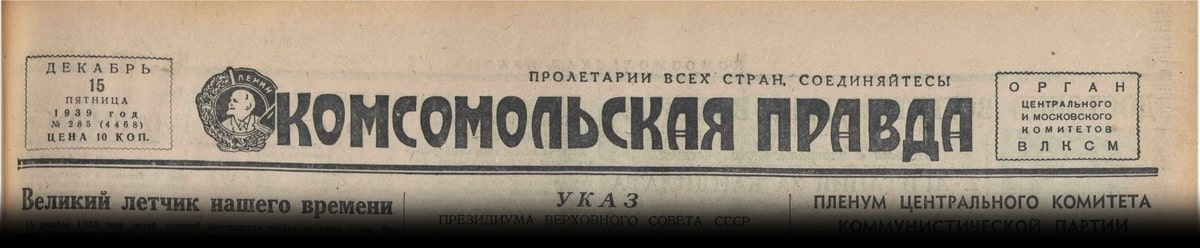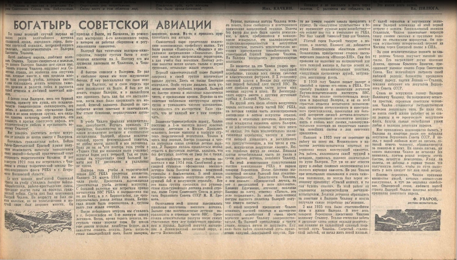 В нашей базе данных имеется его статья о Чкалове В.П., опубликованная в газете "Комсомольская правда" № 285 от 15 декабря 1939 года.
