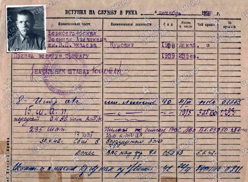 В должности младшего лётчика продолжил службу в 8 иап, 15 шап, 64 авиаполку ЗабВО. В июне 1941 – пилот 235 шап.