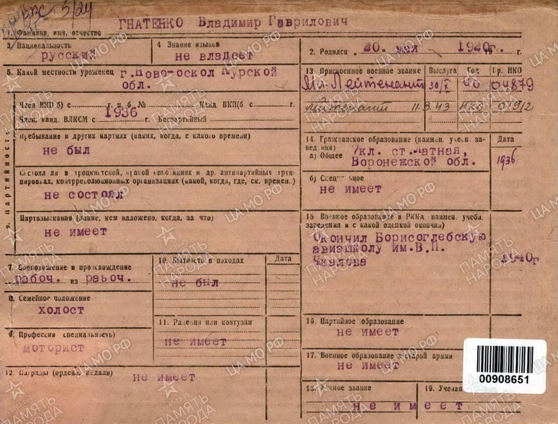 Лётчик 32 гв. иап гвардии лейтенант Гнатенко Владимир Гаврилович погиб 15 марта 1943 года в воздушном бою в районе Хмели, прикрывая наземные войска от налёта самолётов противника в районе д. Годилово Калининской области.