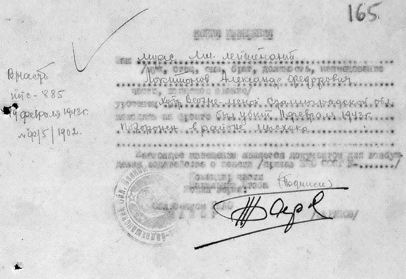 – Книге Памяти Волгоградской области – т. 2, кн. 23, стр. 117, как пропавшего без вести 11 февраля 1943 года;