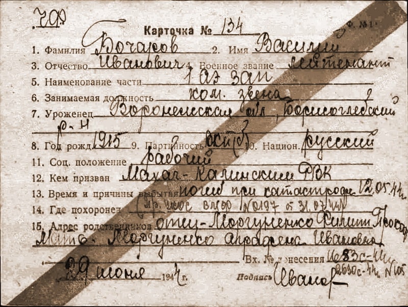 Бочаров Василий Иванович родился в 1915 году в Борисоглебском районе Воронежской области. По национальности русский. Социальное происхождение - из рабочих.