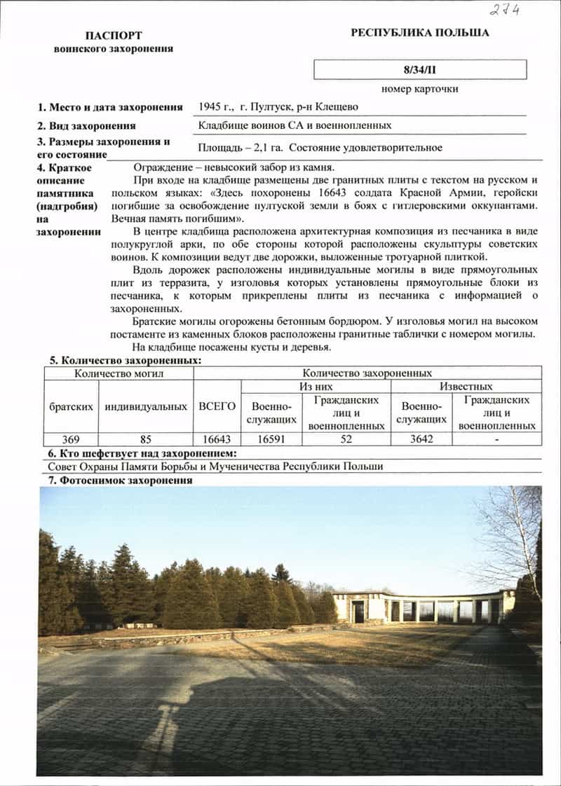 Захоронен на Кладбище воинов Советской Армии и военнопленных в одиночной могиле № 3 в г. Пултуск, район Клещево Мазовецкого воеводства (паспорт воинского захоронения 8/34/II, Республика Польша). На этом кладбище захоронены 16.643 солдата Красной Армии, геройски погибшие при освобождении пултуской земли.