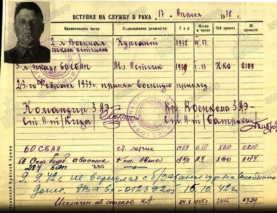 В Красной Армии с 17.04.1938, поступив в Борисоглебскую ВШЛ. В 1939 году окончил ВШЛ (приказ № 0109 НКО СССР). Звание младший лейтенант присвоено 13.01.1939. 23.02.1939 принял военную присягу.