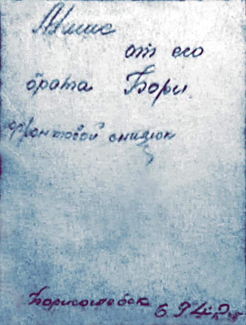 В мае 1942 года родители Бориса Архангельского получили письмо от комиссара батальона А.М. Лузая. Он писал от имени всех бойцов батальона:
