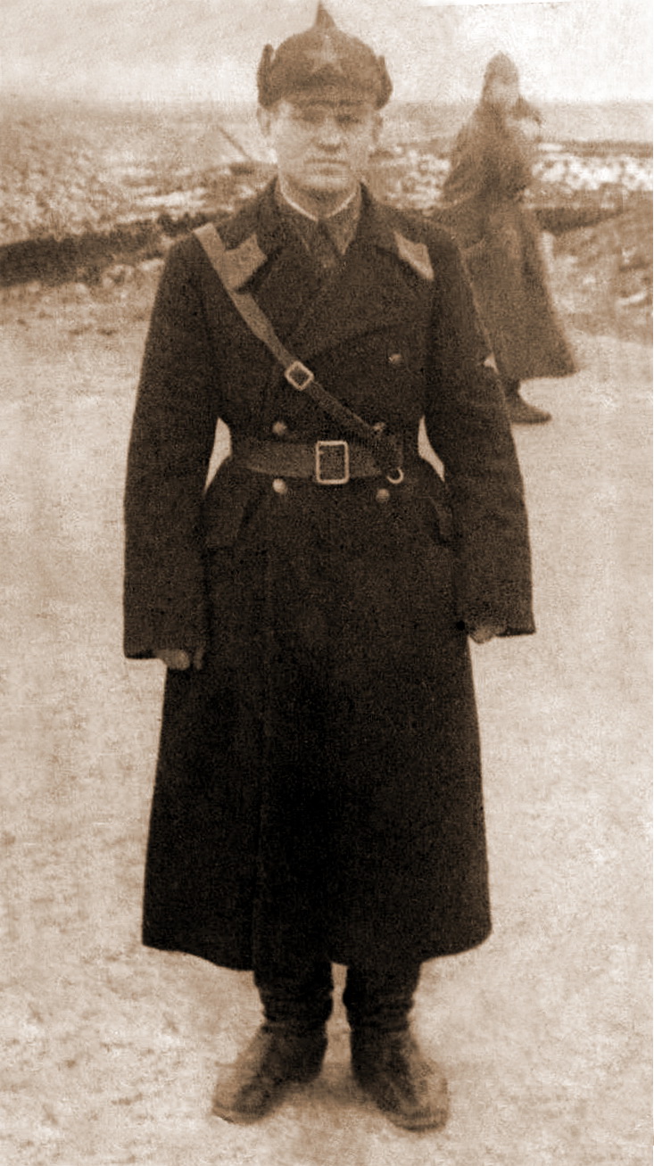 Пилот-инструктор аэроклуба Д.И. Чалый. На петлицах – две звездочки, означающие должностную категорию «инструктор ОСОАВИАХИМа».