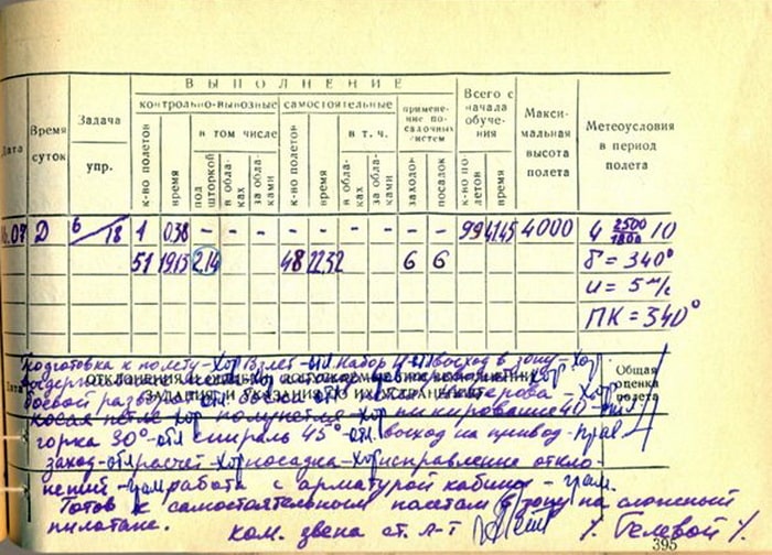 И.Г. Бученов, выпуск 1975 года: "...В 1974 году нас обучали жердевские инструкторы. Страница из лётной книжки:"