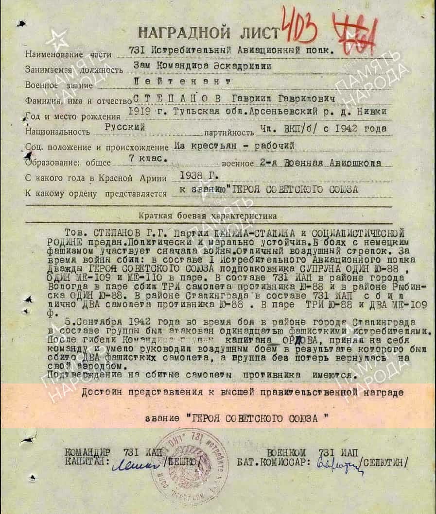 В дальнейшем Степанов Гавриил Гаврилович продолжал службу и воевал в составе 731 иап.