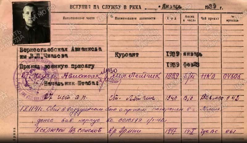 В Красной Армии с января 1939 года - добровольно поступил в Борисоглебскую ВШЛ. Воинскую присягу принял 23 февраля 1939 года. В этом же году окончил Борисоглебскую Краснознамённую ВШЛ им. В.П. Чкалова по I разряду на самолёте И-16 с присвоением воинского звания младший лейтенант (звание присвоено 05.11.1939). После выпуска направлен в 27 иап на должность младшего лётчика.