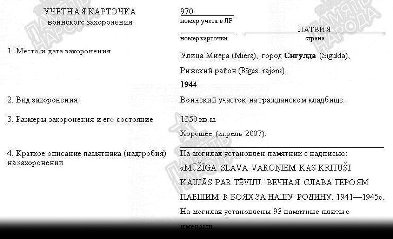 Есть данные о захоронении старшего лейтенанта Юдаева Д.В. (?-1944), лётчика 305-й шад, погибшего над территорией Рижского района, на воинском участке гражданского кладбища в г. Сигулда Латвии (ул. Миера Рижского района).