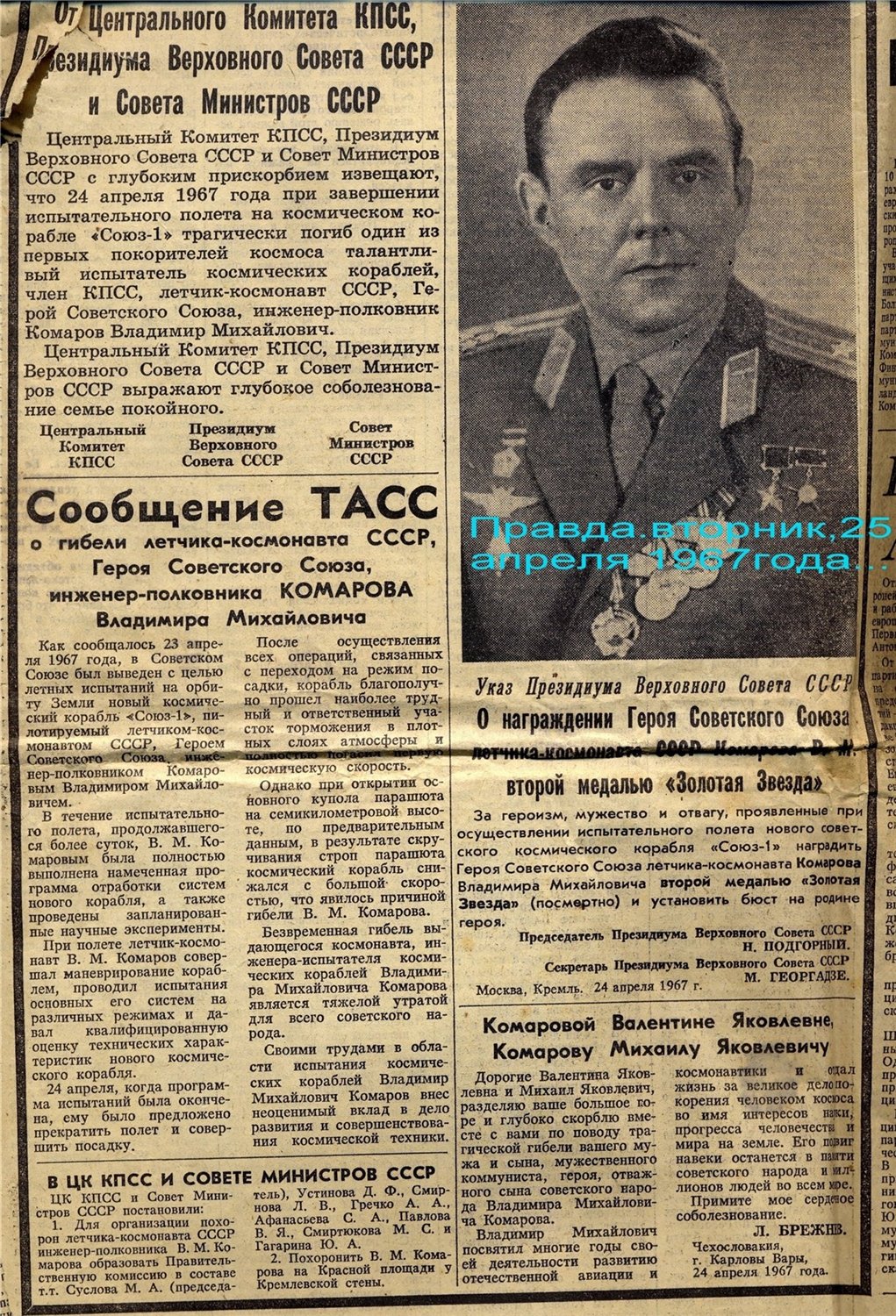 Вырезка из газеты "Правда" от 25.04.1967 (прислал А. Тимохин - Кача-81):