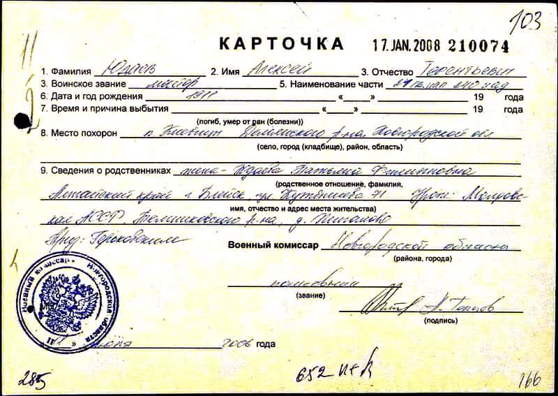 От Администратора сайта. Точная дата рождения Юдаева А.Т. нам пока не известна. Помянем выпускника в день его гибели - 11 ноября.