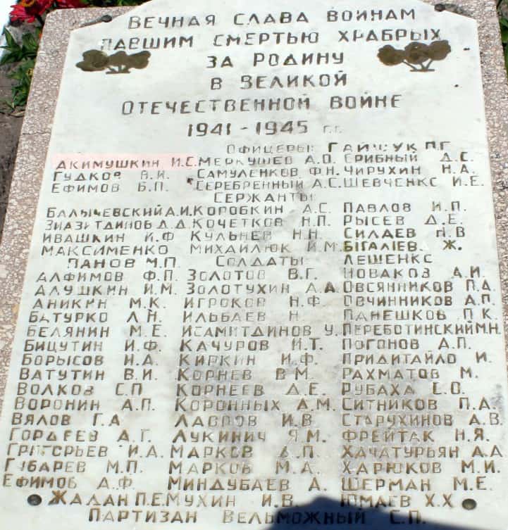 12 августа 1943 года командир звена 181 иап лейтенант Акимушкин Иван Семёнович на самолёте Ла-5 не вернулся с боевого задания, числился пропавшим без вести.