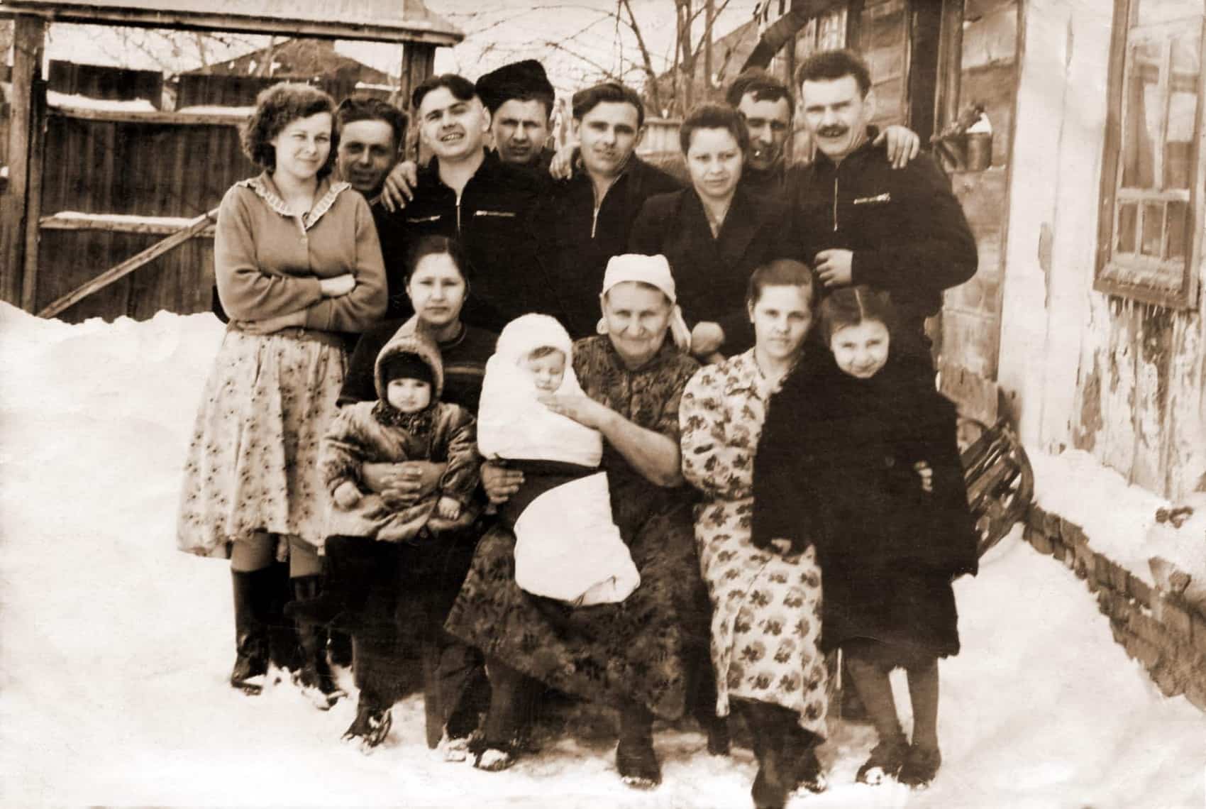 Анна Ивановна, супруга Ивана Николаевича Дьяченко, с детьми и внуками после войны.