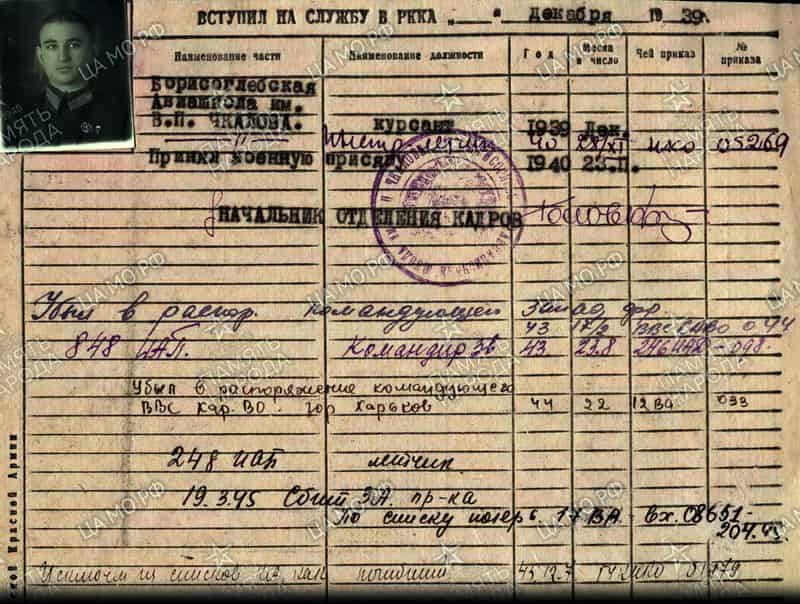 В Красной Армии с 1 декабря 1939 года, поступил в лётную школу. Военную присягу принял 23.02.1940.