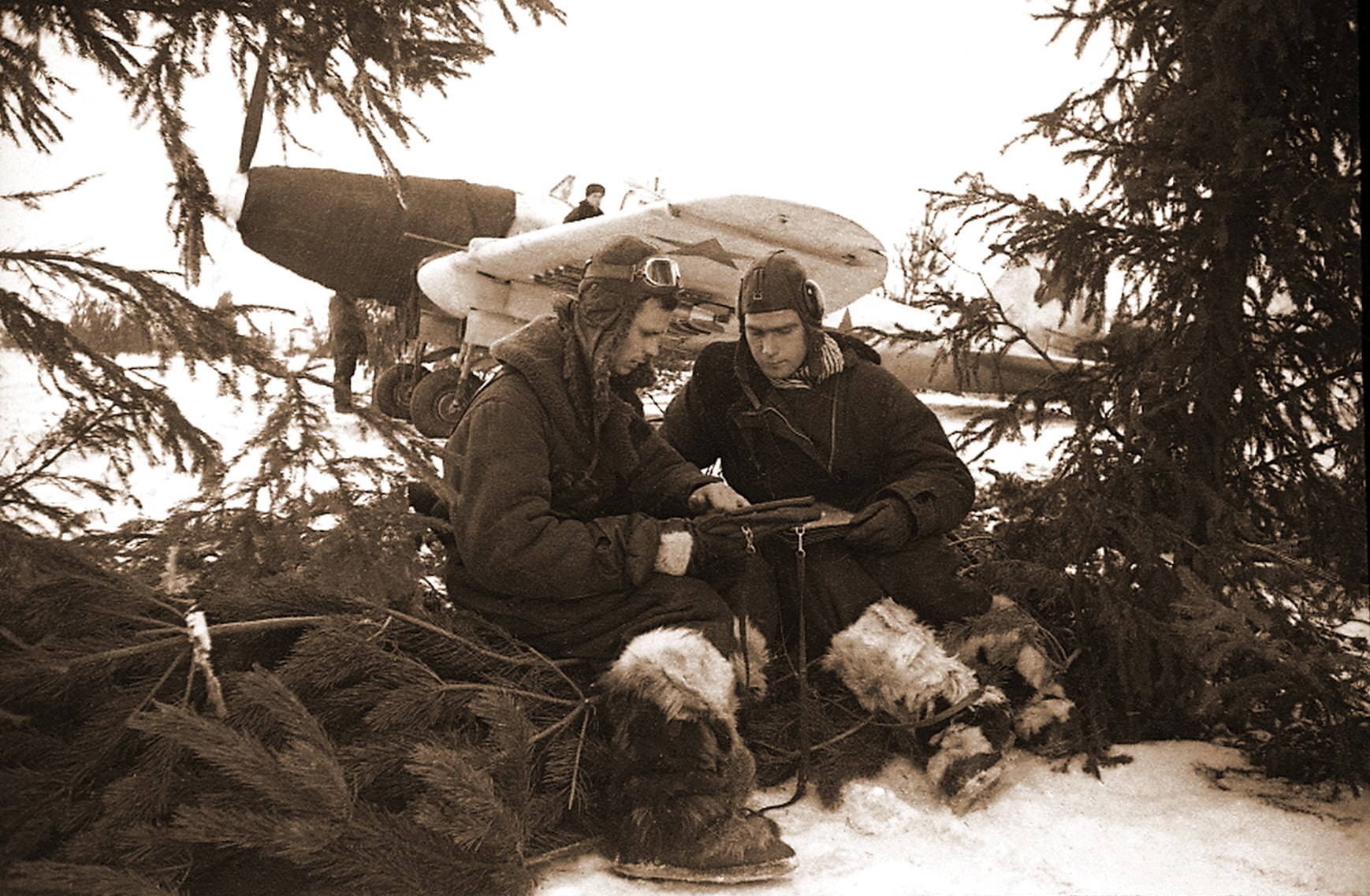 Пилот мл. л-т Уваров Иван Павлович и командир звена ст. л-т Косенков Семён Петрович. Фото 1941 г.