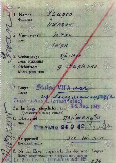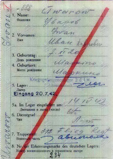 Доставлен в лагерь для пленных летчиков Литцманнштадт 14 апреля 1942 года. Лагерный номер 234.