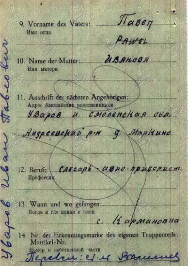 Мать Уварова Татьяна Ивановна проживала в д. Маркино Смоленской области.