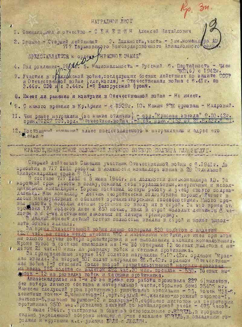 18 декабря 1958 года капитан Сенешин Алексей Михайлович уволен в запас.
