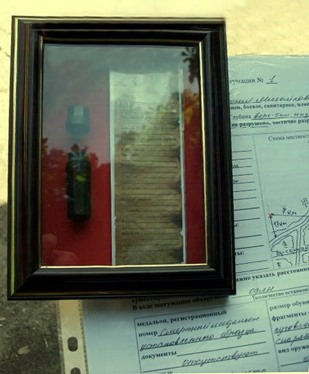 В Карачевском районе, вблизи деревни Песочня поисковыми отрядами "Поиск" г. Карачева и "Патриот" г. Брянска был найден сгоревший в годы войны самолёт и обнаружены останки двоих членов экипажа. У одного из них оказался медальон с размытой запиской. После её исследования, специалистам Брянской лаборатории судебной экспертизы удалось прочитать почти стёртую временем фамилию...