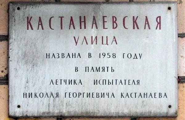 Именем лётчика названы улица в Москве (улица Кастанаевская) и Владикавказе (улица Кастанаева).