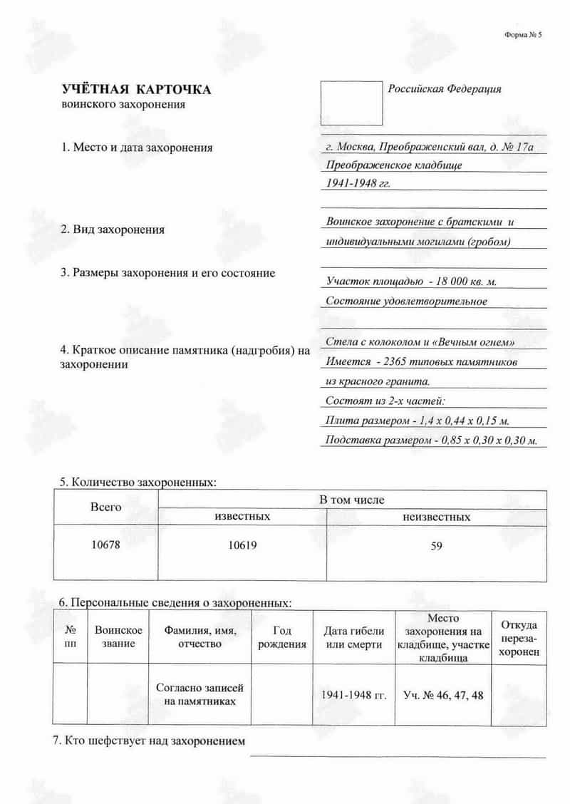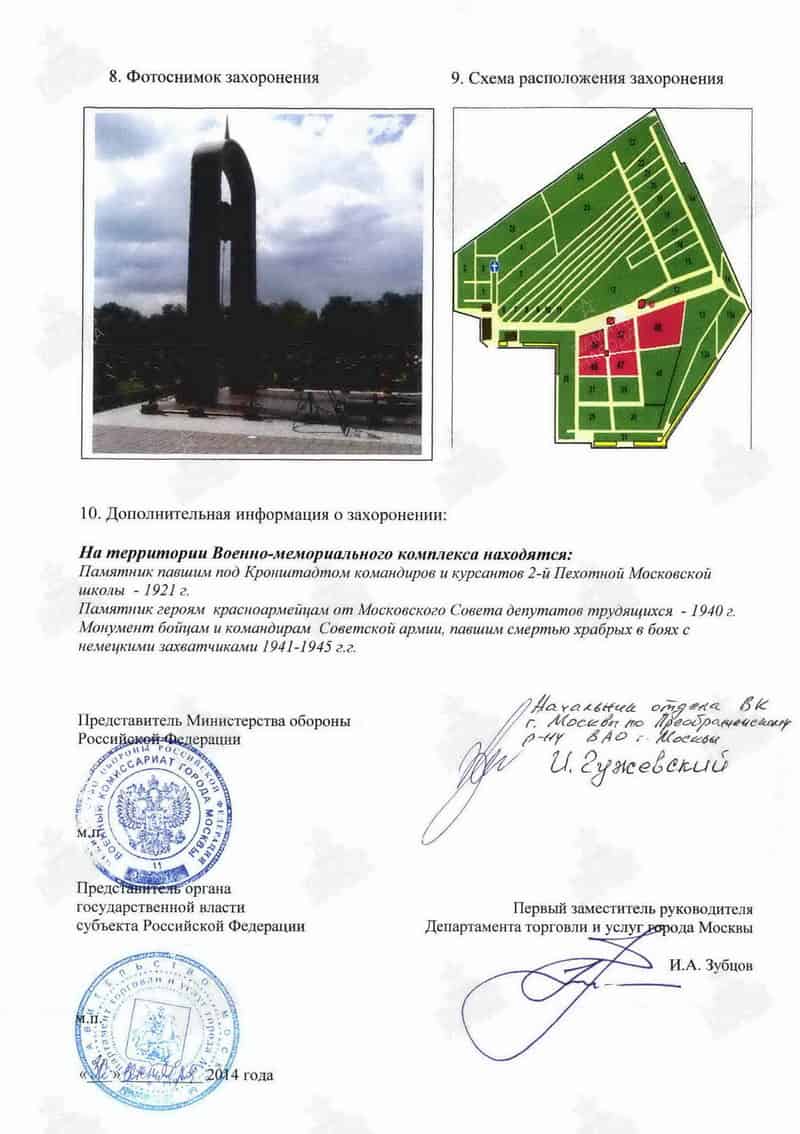Место захоронения: г. Москва, Преображенский вал 17а, Преображенское кладбище, участок 46, ряд 1, могила 7.