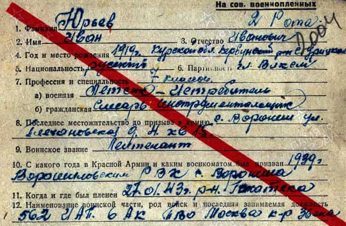Мой папа Юрьев Иван Иванович прожил сложную и удивительную жизнь. Он родился в 1919 г. в селе Урицкое Тербунского района Курской области. После окончания 7 классов школы уехал работать слесарем-инструментальщиком на завод в Воронеж. Добровольно поступил в Борисоглебскую авиационную школу, хотя считается, что призван в 1939 г. Воронежским ОВК Воронежской области. После её окончания служил в Военно-воздушных силах Красной Армии. С 1940 г. служил в 495 истребительно-авиационном полку 6-го авиакорпуса сначала пилотом в звании младшего лейтенанта, а потом в звании лейтенанта - с 14 января 1942 года - командиром звена, о чем есть приказ. Война застала отца в Воронеже. 6 октября 1941 г. в 15 часов в районе Холмицы (ст. Оленино) отец на самолёте И-16 лично сбил первый немецкий самолет Дорнье-215. Тогда он воевал ещё в звании младшего лейтенанта. За это отец получил премию 1000 руб., о чём есть запись в его лётной книжке. Затем в районе Боровска в воздушном бою 24.07.1942 в 12 часов 55 минут сбил Юнкерс-88 в паре с майором Никитиным уже на самолёте Як-1. 05.08.1942 в 7 часов утра на том же самолёте Як-1 в районе Боровска в воздушном бою с группой самолётов противника сбил ещёе одного Юнкерса-88. За 1940 год отец сделал 263 посадки, как записано в его лётной книжке. В 1941 г. на его счету - 279 посадок, а в 1942 г. - 233. Только за 1942 г. отец сделал 82 боевых вылета, а 10 сентября 1942 г. на его счету с самого начала войны было 100 боевых вылетов, за что ему выписали премию в 5000 руб. В общей сложности он провёл пять воздушных боёв. 27 января 1943 г. отец не вернулся с боевого задания в район города Гжатск. Его самолёт был сбит. Тогда его мать, моя бабушка, Мария Иосифовна, проживала на станции Друть Могилёвской области в Белоруссии. Позже ей сообщили, что её сын погиб. На самом деле отец попал в плен и был отправлен в лагерь г. Смоленска. Оттуда его перевели в лагерь для военно-пленных в город Лодзь. Он оттуда сбежал, но был пойман. За побег его посадили в тюрьму города Ошау, откуда отправили в глубь Германии, в лагерь военнопленных в город Лейпциг. Но отец и оттуда совершил побег. И его снова нашли, снова отправили в тюрьму, но уже в город Шверте. Уже оттуда его направили в печально знаменитый лагерь военнопленных Бухенвальд, который освободили американские войска 11 апреля 1945 г. Отца отправили для проверки на станцию Алкино в Башкирскую АССР. За него поручились его однополчане, которые писали много ходатайств. В честь 40-летия Победы папу наградили орденом Отечественной войны II-й степени. Потом отец активно участвовал в общественной ветеранской деятельности, много ездил с однополчанами по школам Москвы и Подмосковья, преподавая уроки патриотизма. Однажды ему пришло письмо, в котором сообщалось: "Фонд взаимпонимания и примирения уведомляет Вас о том, что Швейцарский фонд помощи нуждающимся жертвам ХолокостаШоа окажет Вам как бывшему узнику нацистских лагерей финансовую помощь (одноразовая выплата)". Отец её не не получил и вряд ли стал бы получать. Умер Юрьев Иван Иванович в сентябре 1998 г. в родном для него Клину.