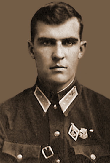 На гимнастёрке - знак «За активную оборонную работу» ОСОАВИАХИМа и значок члена оборонного Общества