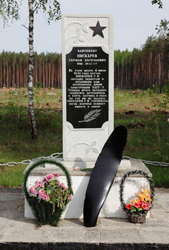 Историю последнего боя Германа Васильевича точно установить невозможно. Скупые строчки донесения о потерях сообщают, что зам. комэска, коммунист лейтенант Пискарёв «Не вернулся с боевого задания 11.07.1942 на самолёте ЛаГГ-3 в р-не Буда Монастырская».